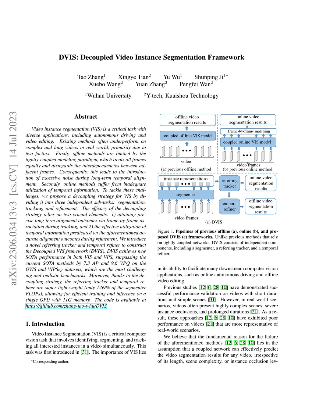 Video instance segmentation (VIS) is a critical task with diverse applications, including autonomous driving and video editing. Existing methods often underperform on complex and long videos in real world, primarily due to two factors. Firstly, offline methods are limited by the tightly-coupled modeling paradigm, which treats all frames equally and disregards the interdependencies between adjacent frames. Consequently, this leads to the introduction of excessive noise during long-term temporal alignment. Secondly, online methods suffer from inadequate utilization of temporal information. To tackle these challenges, we propose a decoupling strategy for VIS by dividing it into three independent sub-tasks: segmentation, tracking, and refinement. The efficacy of the decoupling strategy relies on two crucial elements: 1) attaining precise long-term alignment outcomes via frame-by-frame association during tracking, and 2) the effective utilization of temporal information predicated on the aforementioned accurate alignment outcomes during refinement. We introduce a novel referring tracker and temporal refiner to construct the \textbf{D}ecoupled \textbf{VIS} framework (\textbf{DVIS}). DVIS achieves new SOTA performance in both VIS and VPS, surpassing the current SOTA methods by 7.3 AP and 9.6 VPQ on the OVIS and VIPSeg datasets, which are the most challenging and realistic benchmarks. Moreover, thanks to the decoupling strategy, the referring tracker and temporal refiner are super light-weight (only 1.69\% of the segmenter FLOPs), allowing for efficient training and inference on a single GPU with 11G memory. The code is available at \href{https://github.com/zhang-tao-whu/DVIS}{https://github.com/zhang-tao-whu/DVIS}.