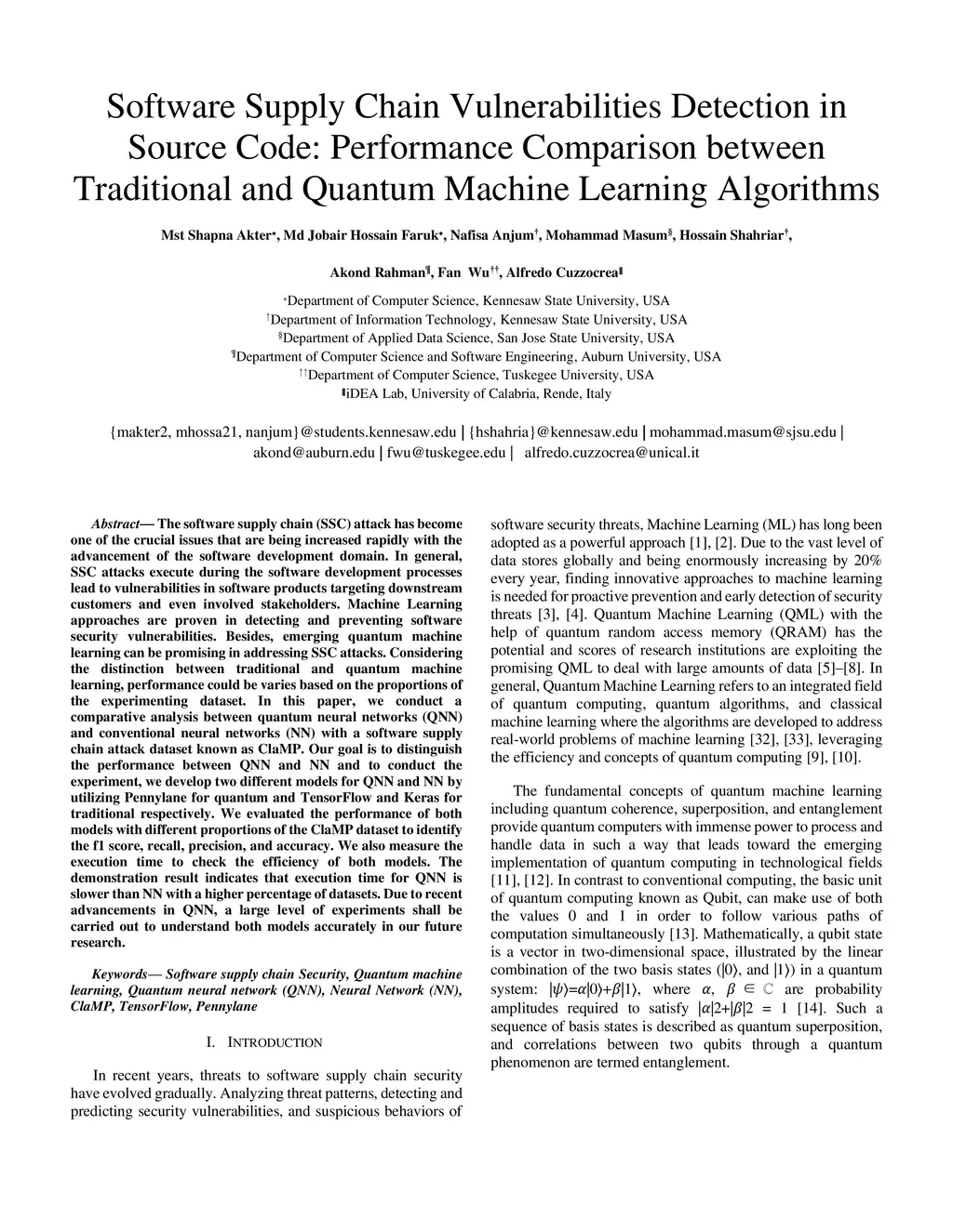 The software supply chain (SSC) attack has become one of the crucial issues that are being increased rapidly with the advancement of the software development domain. In general, SSC attacks execute during the software development processes lead to vulnerabilities in software products targeting downstream customers and even involved stakeholders. Machine Learning approaches are proven in detecting and preventing software security vulnerabilities. Besides, emerging quantum machine learning can be promising in addressing SSC attacks. Considering the distinction between traditional and quantum machine learning, performance could be varies based on the proportions of the experimenting dataset. In this paper, we conduct a comparative analysis between quantum neural networks (QNN) and conventional neural networks (NN) with a software supply chain attack dataset known as ClaMP. Our goal is to distinguish the performance between QNN and NN and to conduct the experiment, we develop two different models for QNN and NN by utilizing Pennylane for quantum and TensorFlow and Keras for traditional respectively. We evaluated the performance of both models with different proportions of the ClaMP dataset to identify the f1 score, recall, precision, and accuracy. We also measure the execution time to check the efficiency of both models. The demonstration result indicates that execution time for QNN is slower than NN with a higher percentage of datasets. Due to recent advancements in QNN, a large level of experiments shall be carried out to understand both models accurately in our future research.