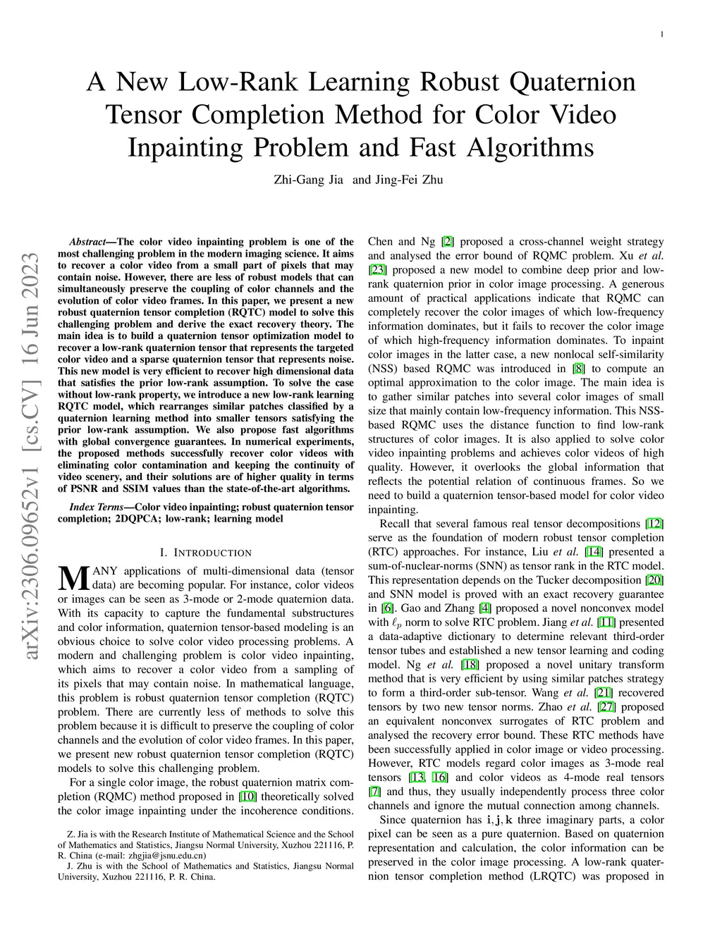 A New Low-Rank Learning Robust Quaternion Tensor Completion Method for