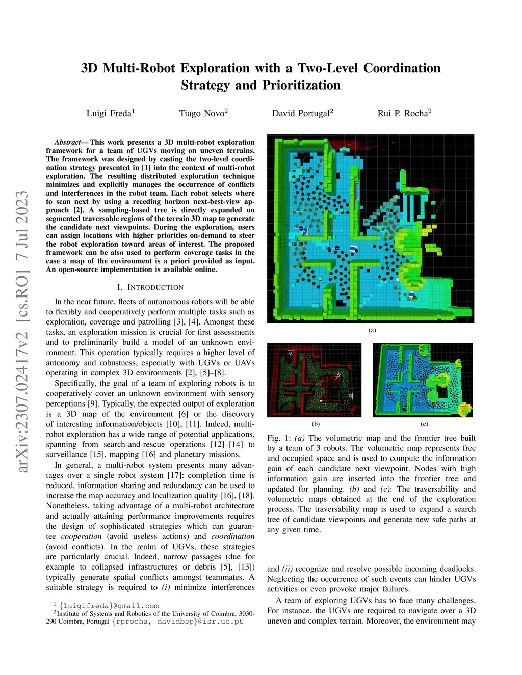 3D Multi-Robot Exploration with a Two-Level Coordination Strategy and