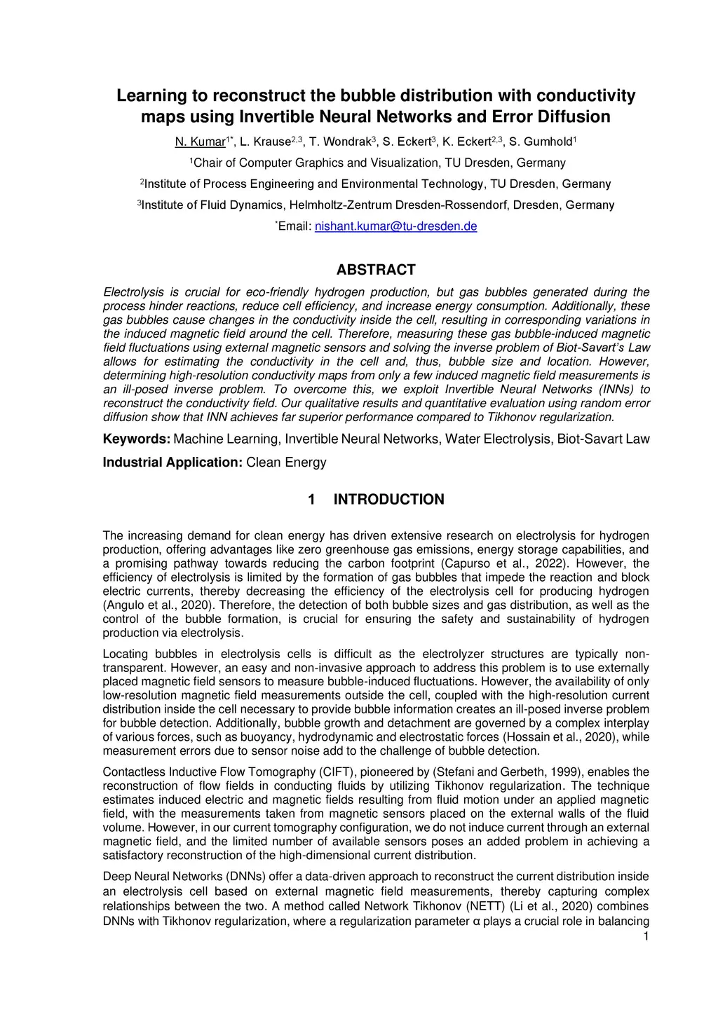 Electrolysis is crucial for eco-friendly hydrogen production, but gas bubbles generated during the process hinder reactions, reduce cell efficiency, and increase energy consumption. Additionally, these gas bubbles cause changes in the conductivity inside the cell, resulting in corresponding variations in the induced magnetic field around the cell. Therefore, measuring these gas bubble-induced magnetic field fluctuations using external magnetic sensors and solving the inverse problem of Biot-Savart Law allows for estimating the conductivity in the cell and, thus, bubble size and location. However, determining high-resolution conductivity maps from only a few induced magnetic field measurements is an ill-posed inverse problem. To overcome this, we exploit Invertible Neural Networks (INNs) to reconstruct the conductivity field. Our qualitative results and quantitative evaluation using random error diffusion show that INN achieves far superior performance compared to Tikhonov regularization.
