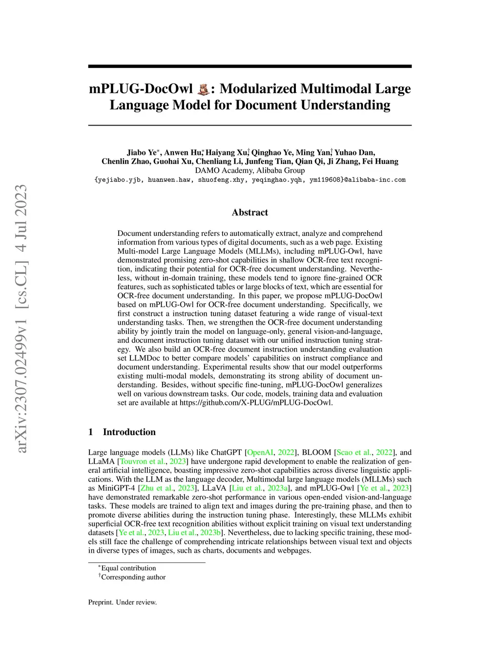 mPLUG-DocOwl: Modularized Multimodal Large Language Model for Document