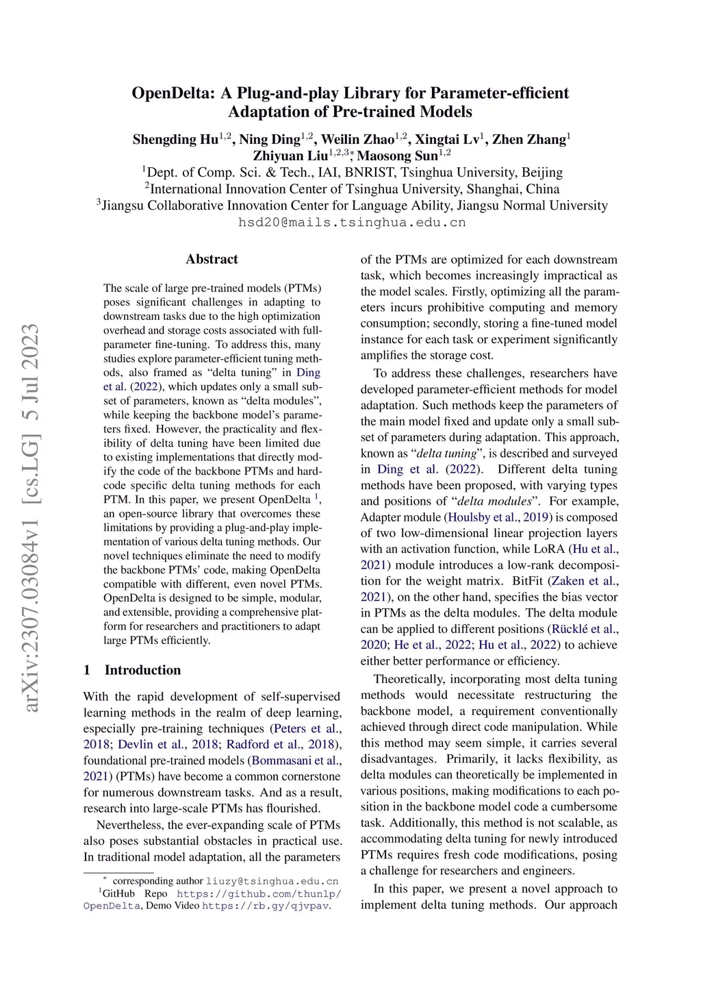 OpenDelta: A Plug-and-play Library for Parameter-efficient Adaptation of