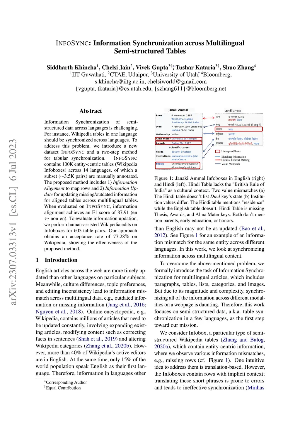 InfoSync: Information Synchronization across Multilingual