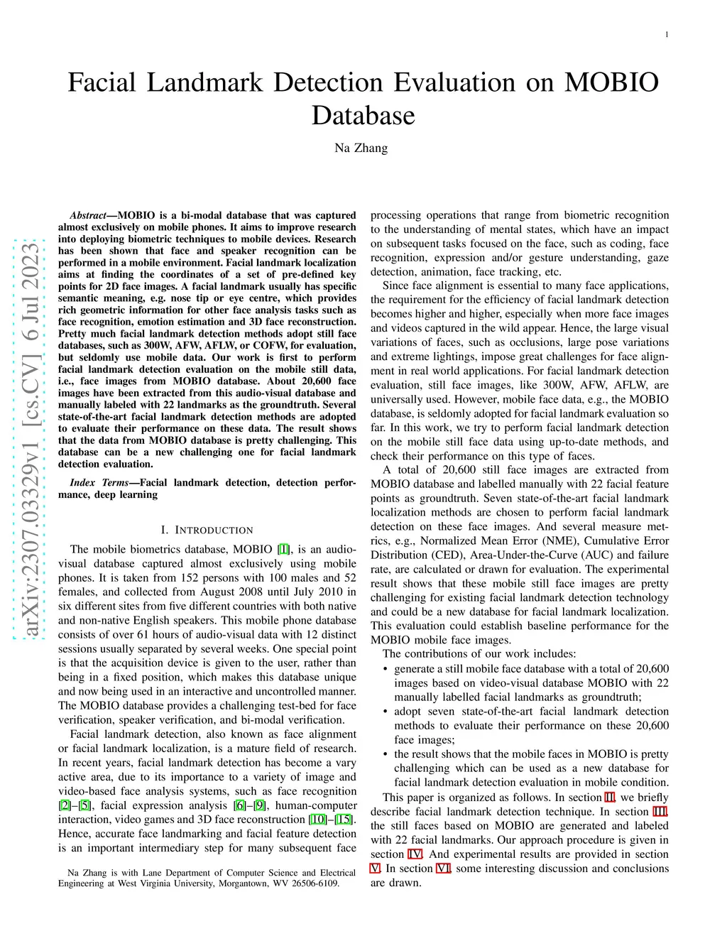 Facial Landmark Detection Evaluation on MOBIO Database