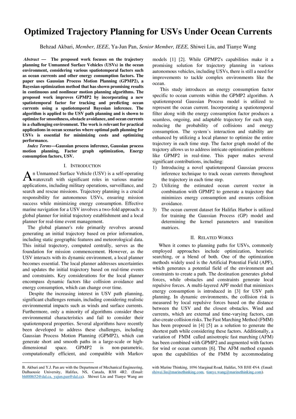 Unmanned Surface Vehicles (USVs) in the ocean environment, considering various spatiotemporal factors such as ocean currents and other energy consumption factors. The paper uses Gaussian Process Motion Planning (GPMP2), a Bayesian optimization method that has shown promising results in continuous and nonlinear motion planning algorithms. The proposed work improves GPMP2 by incorporating a new spatiotemporal factor for tracking and predicting ocean currents using a spatiotemporal Bayesian inference. The algorithm is applied to the USV path planning and is shown to optimize for smoothness, obstacle avoidance, and ocean currents in a challenging environment. The work is relevant for practical applications in ocean scenarios where optimal path planning for USVs is essential for minimizing costs and optimizing performance.