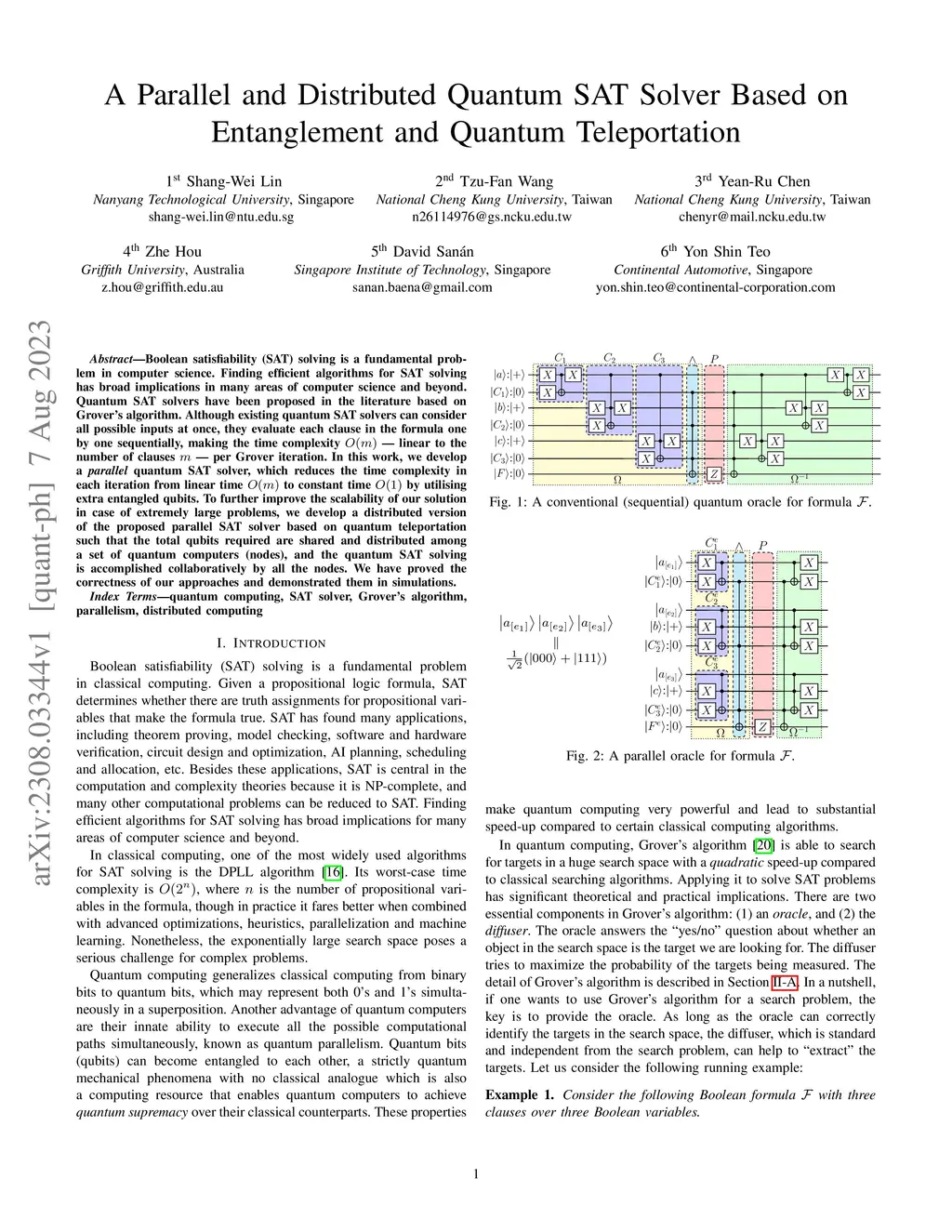 A Parallel and Distributed Quantum SAT Solver Based on Entanglement and