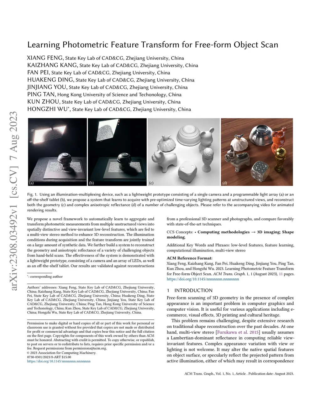 Learning Photometric Feature Transform for Free-form Object Scan