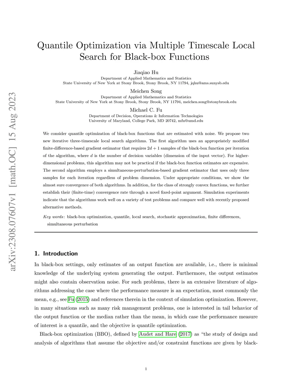 We consider quantile optimization of black-box functions that are estimated with noise. We propose two new iterative three-timescale local search algorithms. The first algorithm uses an appropriately modified finite-difference-based gradient estimator that requires + 1 samples of the black-box function per iteration of the algorithm, where is the number of decision variables (dimension of the input vector). For higher-dimensional problems, this algorithm may not be practical if the black-box function estimates are expensive. The second algorithm employs a simultaneous-perturbation-based gradient estimator that uses only three samples for each iteration regardless of problem dimension. Under appropriate conditions, we show the almost sure convergence of both algorithms. In addition, for the class of strongly convex functions, we further establish their (finite-time) convergence rate through a novel fixed-point argument. Simulation experiments indicate that the algorithms work well on a variety of test problems and compare well with recently proposed alternative methods.