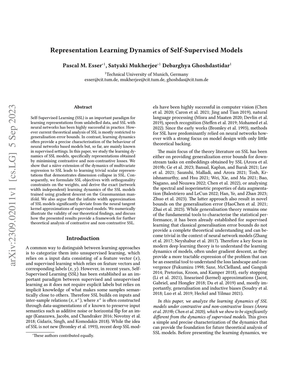 Self-Supervised Learning (SSL) is an important paradigm for learning representations from unlabelled data, and SSL with neural networks has been highly successful in practice. However current theoretical analysis of SSL is mostly restricted to generalisation error bounds. In contrast, learning dynamics often provide a precise characterisation of the behaviour of neural networks based models but, so far, are mainly known in supervised settings. In this paper, we study the learning dynamics of SSL models, specifically representations obtained by minimising contrastive and non-contrastive losses. We show that a naive extension of the dymanics of multivariate regression to SSL leads to learning trivial scalar representations that demonstrates dimension collapse in SSL. Consequently, we formulate SSL objectives with orthogonality constraints on the weights, and derive the exact (network width independent) learning dynamics of the SSL models trained using gradient descent on the Grassmannian manifold. We also argue that the infinite width approximation of SSL models significantly deviate from the neural tangent kernel approximations of supervised models. We numerically illustrate the validity of our theoretical findings, and discuss how the presented results provide a framework for further theoretical analysis of contrastive and non-contrastive SSL.
