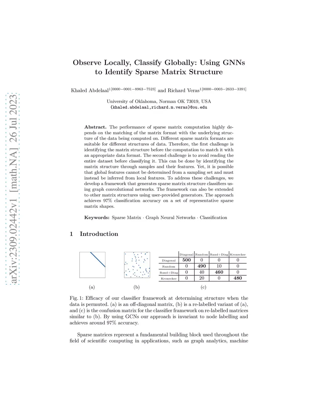 Observe Locally, Classify Globally: Using GNNs to Identify Sparse Matrix