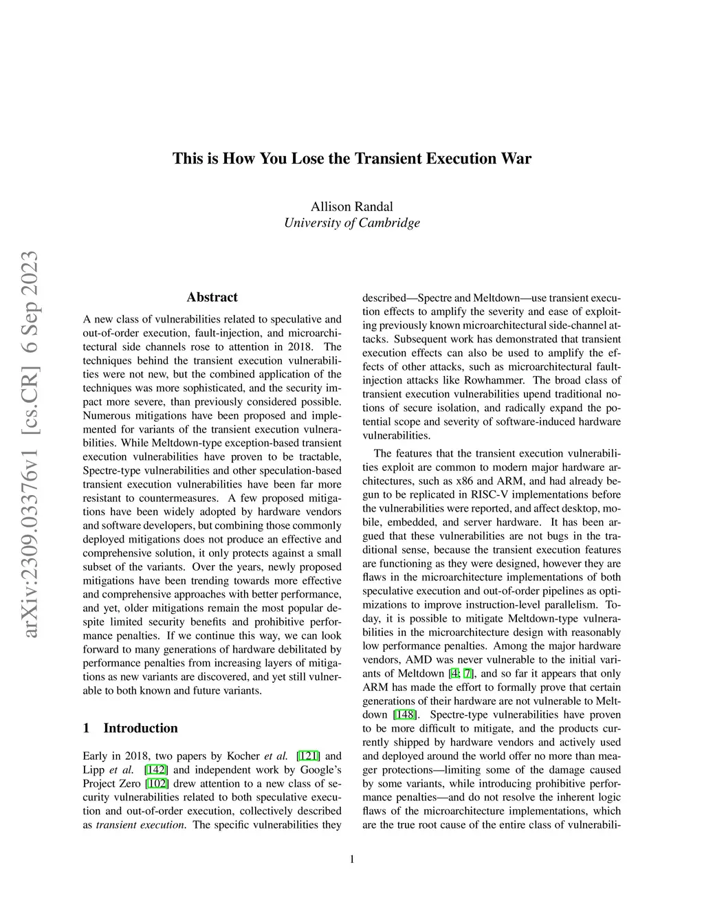 This is How You Lose the Transient Execution War
