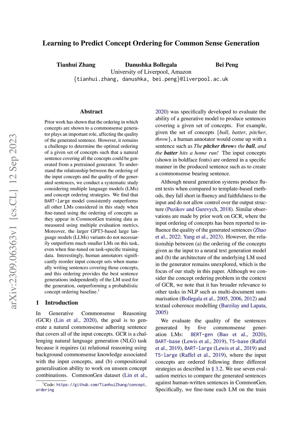 Learning to Predict Concept Ordering for Common Sense Generation
