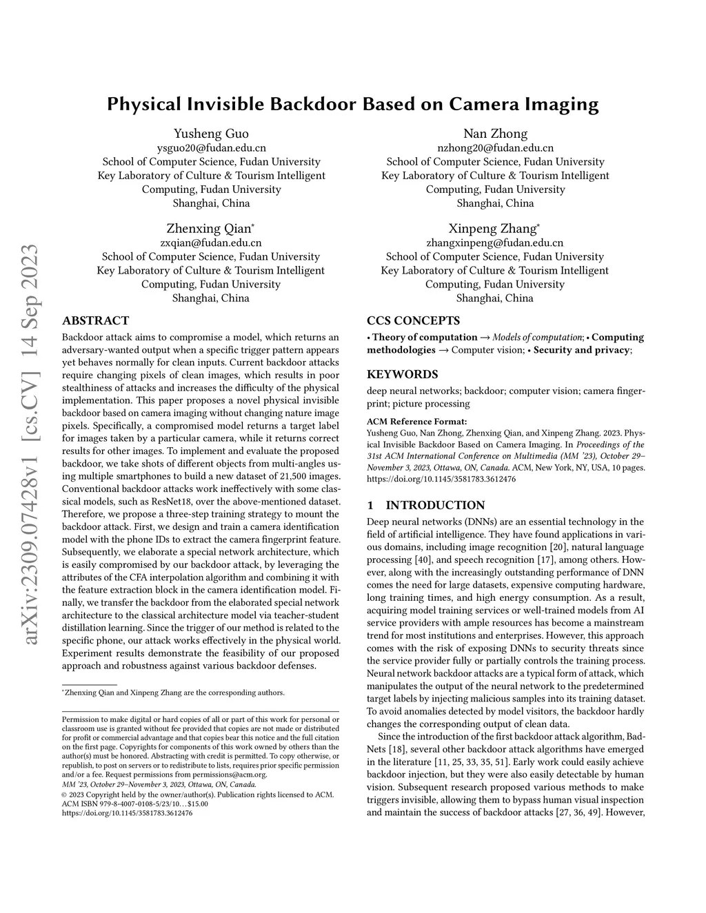Physical Invisible Backdoor Based on Camera Imaging
