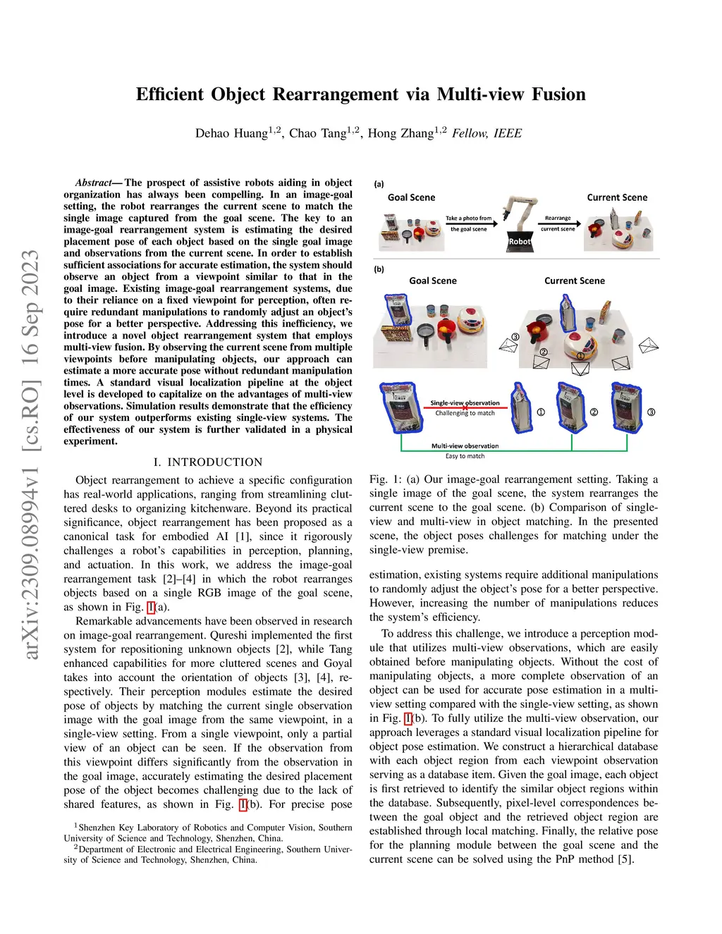 Efficient Object Rearrangement via Multi-view Fusion
