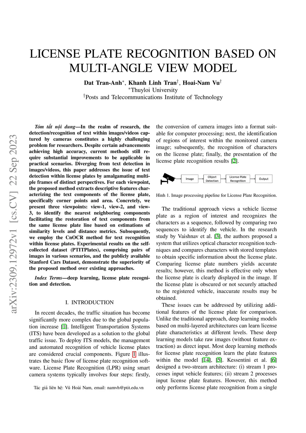 In the realm of research, the detection/recognition of text within images/videos captured by cameras constitutes a highly challenging problem for researchers. Despite certain advancements achieving high accuracy, current methods still require substantial improvements to be applicable in practical scenarios. Diverging from text detection in images/videos, this paper addresses the issue of text detection within license plates by amalgamating multiple frames of distinct perspectives. For each viewpoint, the proposed method extracts descriptive features characterizing the text components of the license plate, specifically corner points and area. Concretely, we present three viewpoints: view-1, view-2, and view-3, to identify the nearest neighboring components facilitating the restoration of text components from the same license plate line based on estimations of similarity levels and distance metrics. Subsequently, we employ the CnOCR method for text recognition within license plates. Experimental results on the self-collected dataset (PTITPlates), comprising pairs of images in various scenarios, and the publicly available Stanford Cars Dataset, demonstrate the superiority of the proposed method over existing approaches.