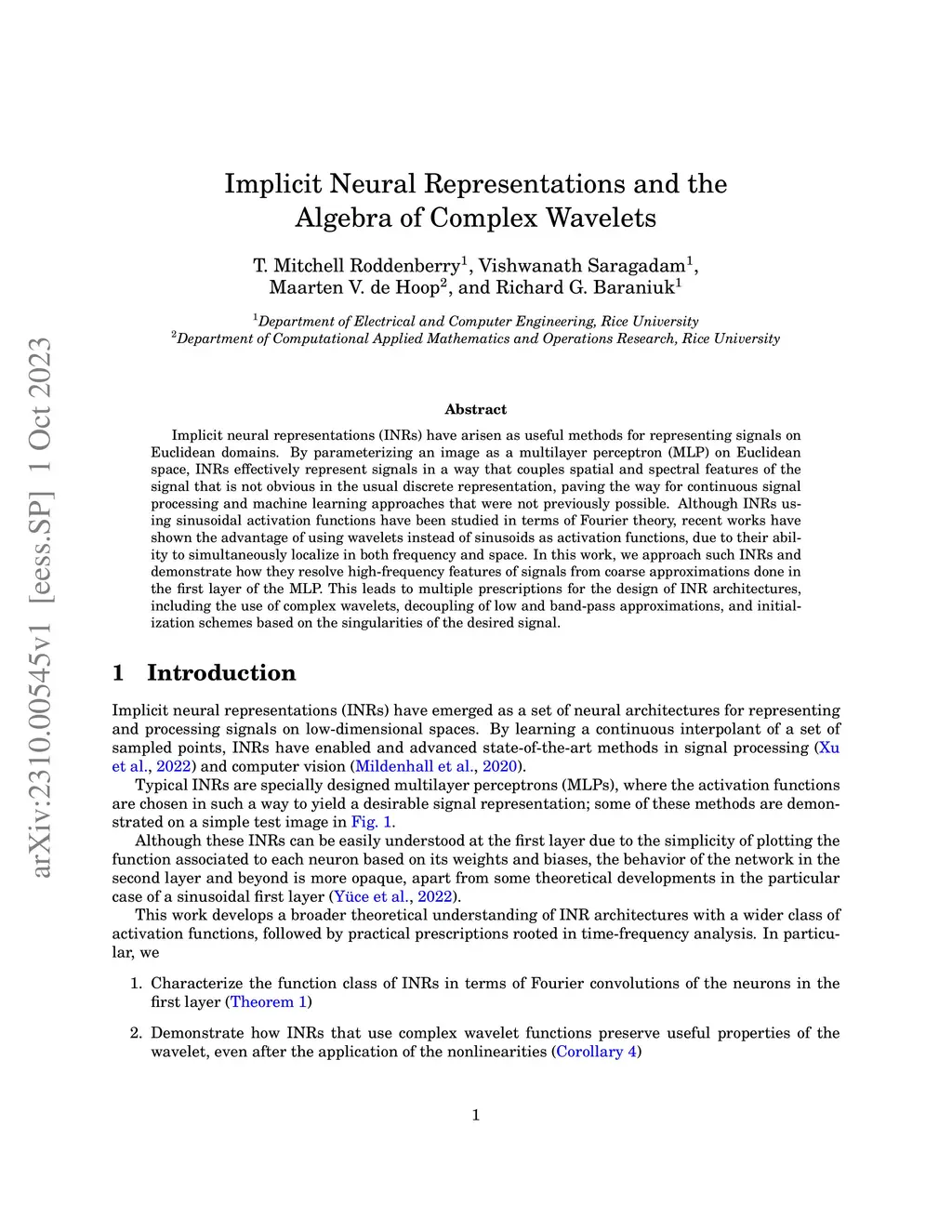 Implicit Neural Representations and the Algebra of Complex Wavelets