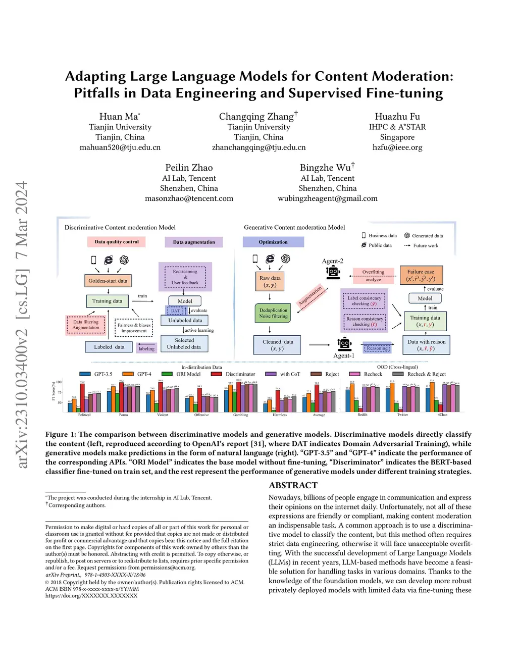 Nowadays, billions of people engage in communication and express their opinions on the internet daily. Unfortunately, not all of these expressions are friendly or compliant, making content moderation an indispensable task. A common approach is to use a discriminative model to classify the content, but this method often requires strict data engineering, otherwise it will face unacceptable overfitting. With the successful development of Large Language Models (LLMs) in recent years, LLM-based methods have become a feasible solution for handling tasks in various domains. Thanks to the knowledge of the foundation models, we can develop more robust privately deployed models with limited data via fine-tuning these foundation models. Moreover, as a generative model, it can provide detailed analysis of the review process, enhancing interpretability. In this paper, we introduce how to fine-tune a LLM model that can be privately deployed for content moderation. Specifically, we discuss the differences between discriminative and generative models using content moderation as an example. Additionally, we reveal that incorporating reasoning processes during the fine-tuning of LLMs can effectively alleviate overfitting, even if the model is not allowed to directly output reasoning processes during deployment. We present a complete process, from data collection and construction to model training and overfitting elimination, for fine-tuning LLMs in vertical domain deployments. We report the entire research process and the key findings in this paper, hoping to provide valuable experience for researchers who are fine-tuning privately deployed models in their domain-specific research.