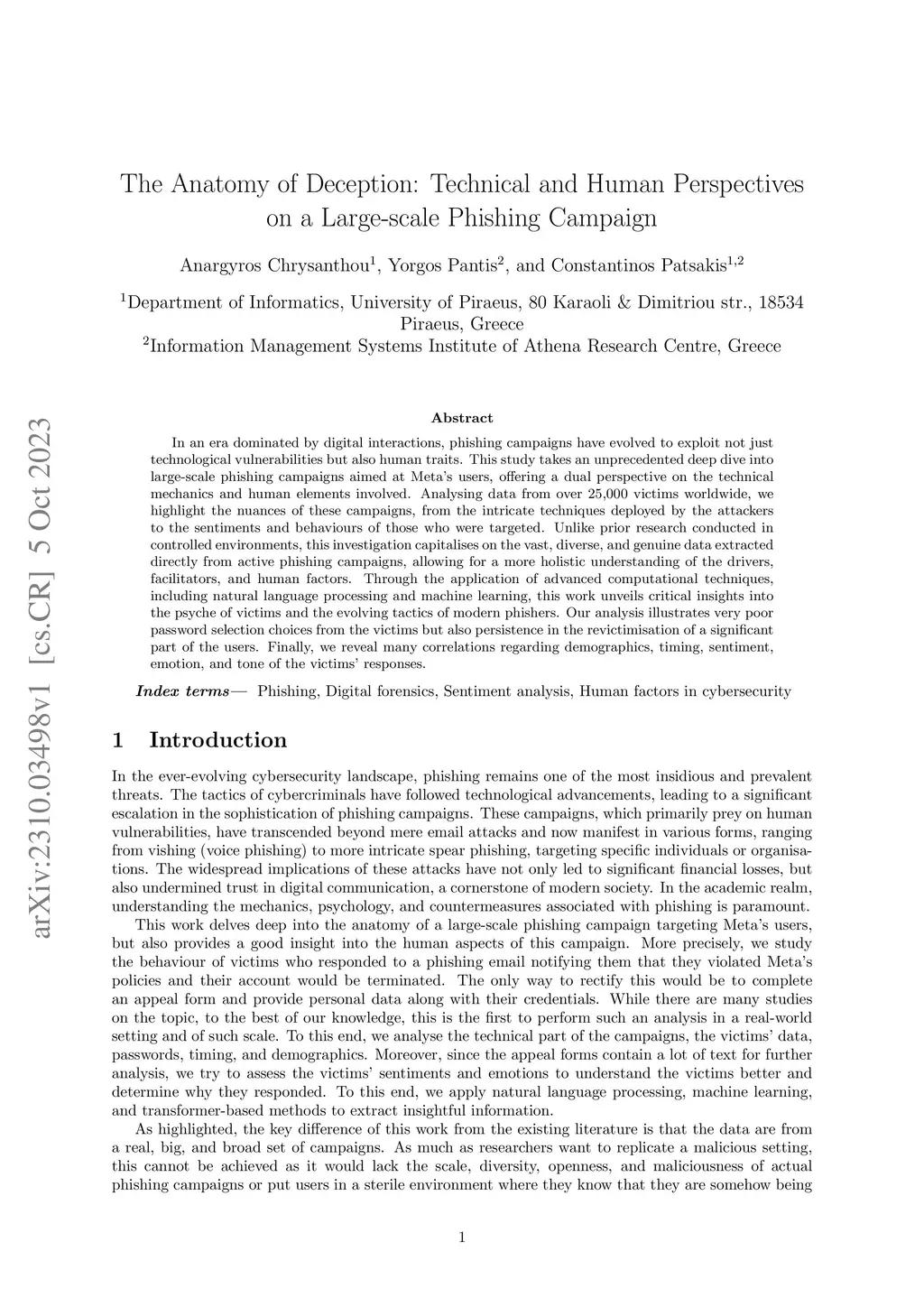 In an era dominated by digital interactions, phishing campaigns have evolved to exploit not just technological vulnerabilities but also human traits. This study takes an unprecedented deep dive into large-scale phishing campaigns aimed at Meta's users, offering a dual perspective on the technical mechanics and human elements involved. Analysing data from over 25,000 victims worldwide, we highlight the nuances of these campaigns, from the intricate techniques deployed by the attackers to the sentiments and behaviours of those who were targeted. Unlike prior research conducted in controlled environments, this investigation capitalises on the vast, diverse, and genuine data extracted directly from active phishing campaigns, allowing for a more holistic understanding of the drivers, facilitators, and human factors. Through the application of advanced computational techniques, including natural language processing and machine learning, this work unveils critical insights into the psyche of victims and the evolving tactics of modern phishers. Our analysis illustrates very poor password selection choices from the victims but also persistence in the revictimisation of a significant part of the users. Finally, we reveal many correlations regarding demographics, timing, sentiment, emotion, and tone of the victims' responses.