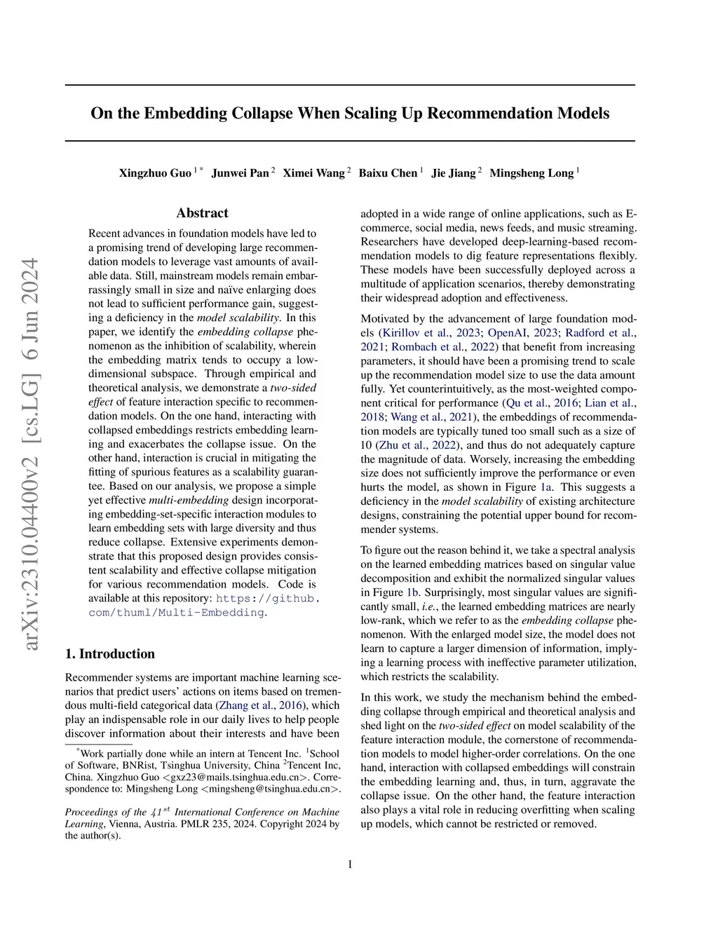 On the Embedding Collapse when Scaling up Recommendation Models