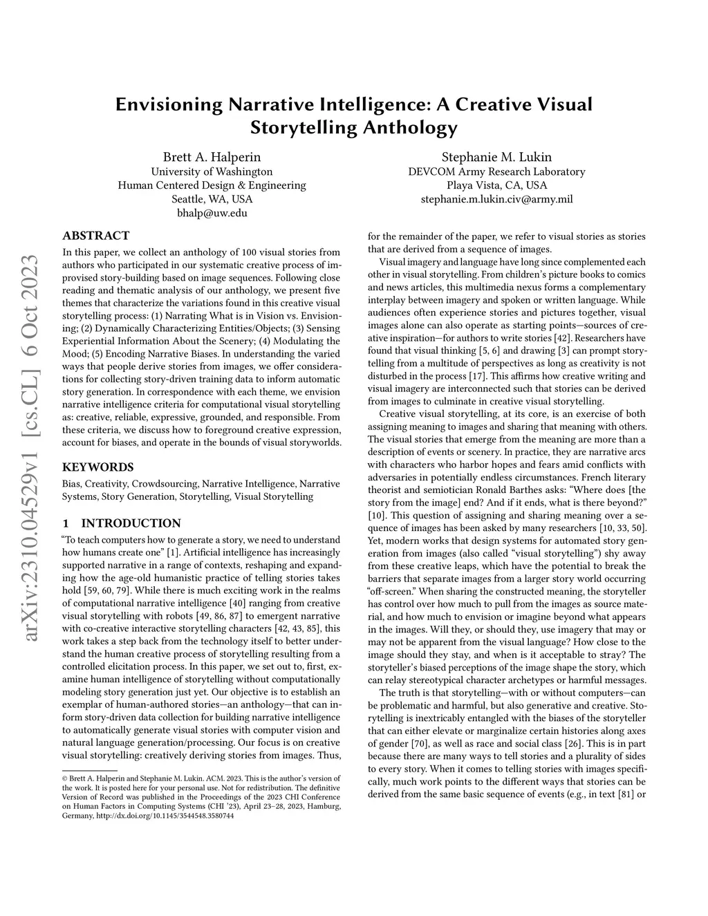Envisioning Narrative Intelligence: A Creative Visual Storytelling