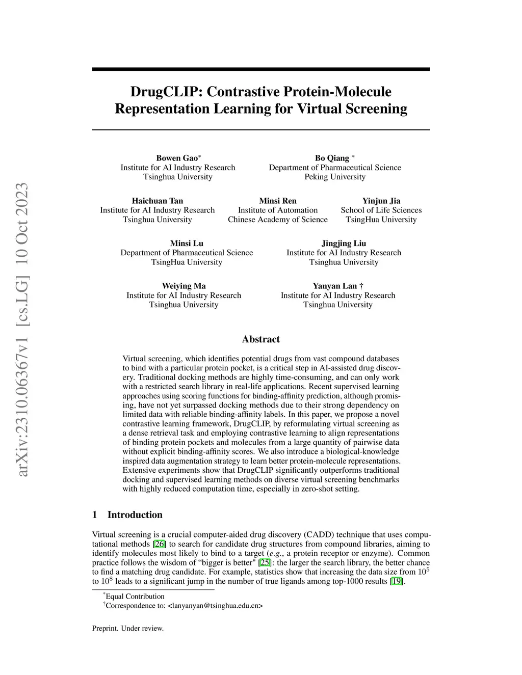 DrugCLIP: Contrastive Protein-Molecule Representation Learning for