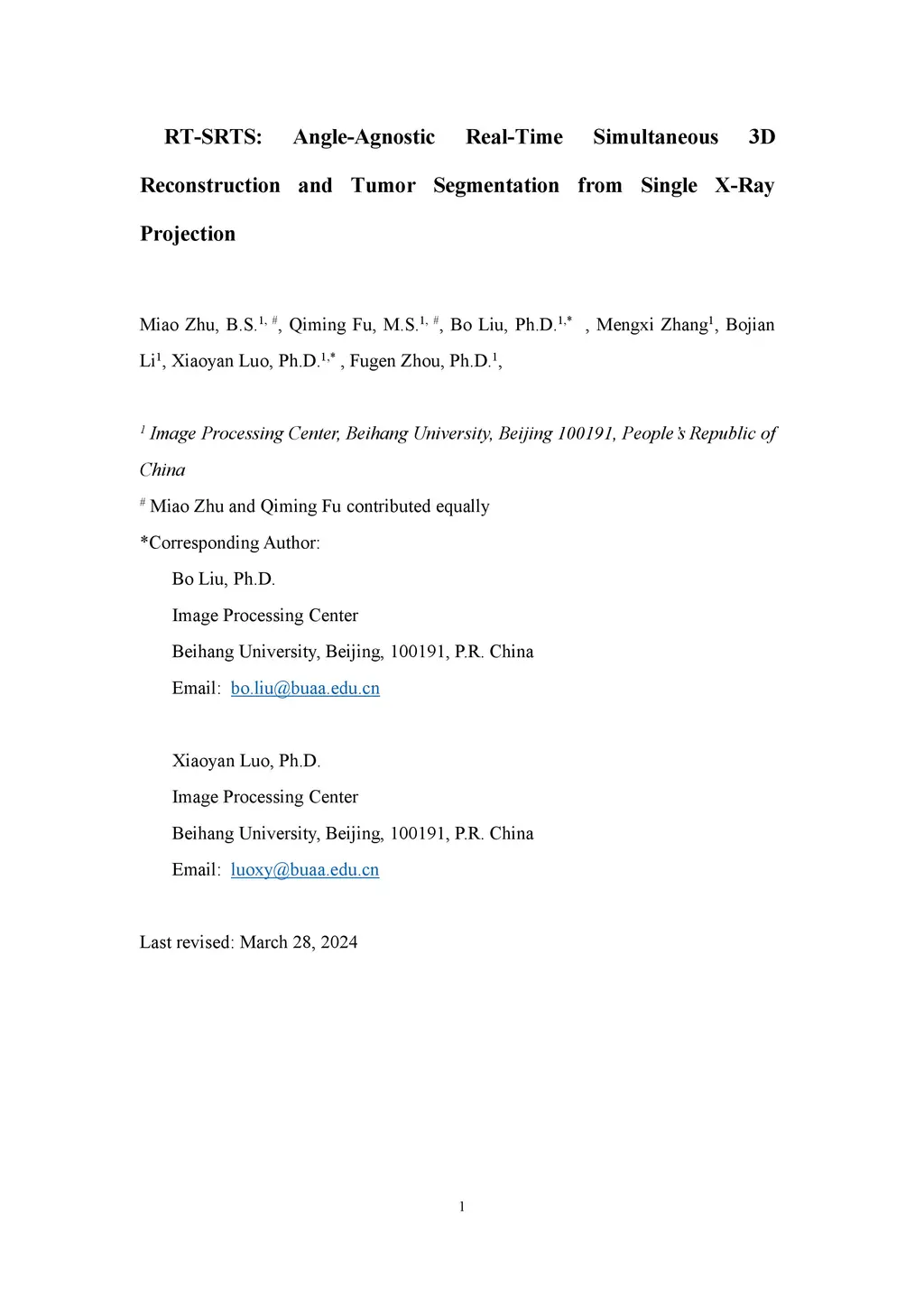 Radiotherapy is one of the primary treatment methods for tumors, but the organ movement caused by respiration limits its accuracy. Recently, 3D imaging from a single X-ray projection has received extensive attention as a promising approach to address this issue. However, current methods can only reconstruct 3D images without directly locating the tumor and are only validated for fixed-angle imaging, which fails to fully meet the requirements of motion control in radiotherapy. In this study, a novel imaging method RT-SRTS is proposed which integrates 3D imaging and tumor segmentation into one network based on multi-task learning (MTL) and achieves real-time simultaneous 3D reconstruction and tumor segmentation from a single X-ray projection at any angle. Furthermore, the attention enhanced calibrator (AEC) and uncertain-region elaboration (URE) modules have been proposed to aid feature extraction and improve segmentation accuracy. The proposed method was evaluated on fifteen patient cases and compared with three state-of-the-art methods. It not only delivers superior 3D reconstruction but also demonstrates commendable tumor segmentation results. Simultaneous reconstruction and segmentation can be completed in approximately 70 ms, significantly faster than the required time threshold for real-time tumor tracking. The efficacies of both AEC and URE have also been validated in ablation studies. The code of work is available at https://github.com/ZywooSimple/RT-SRTS.