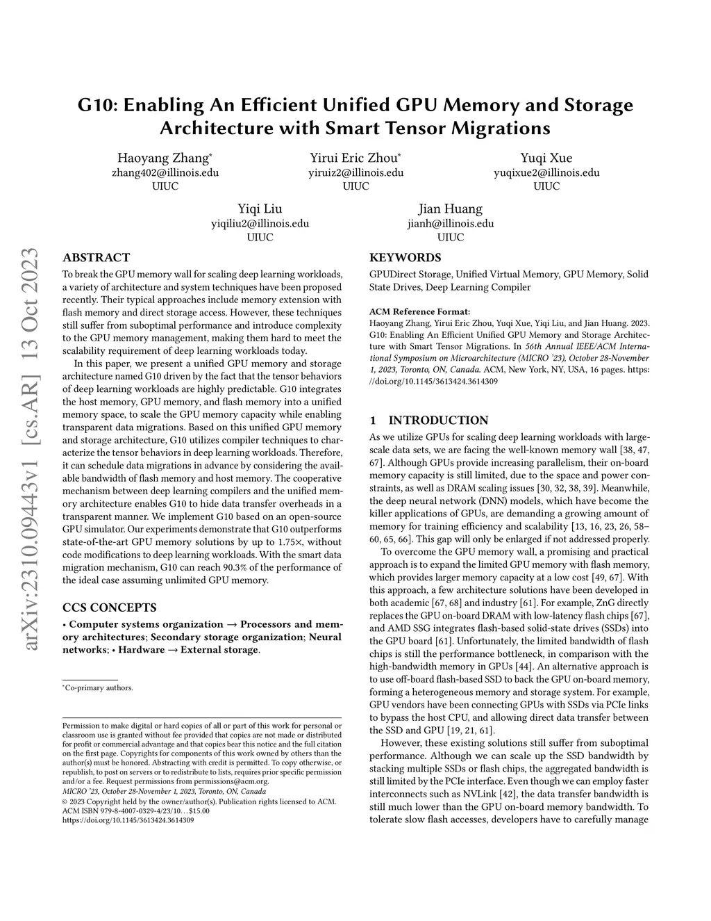 G10: Enabling An Efficient Unified GPU Memory and Storage Architecture