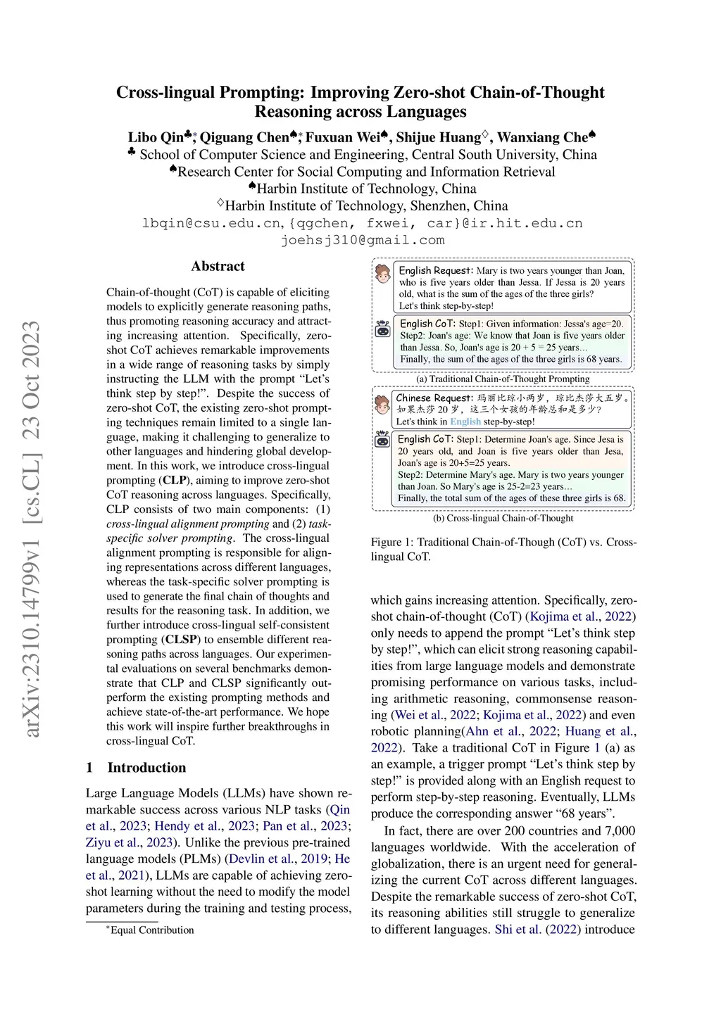 Cross-lingual Prompting: Improving Zero-shot Chain-of-Thought Reasoning