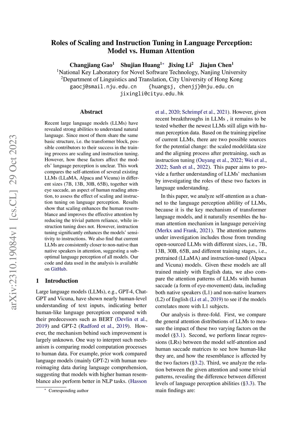 Roles of Scaling and Instruction Tuning in Language Perception: Model