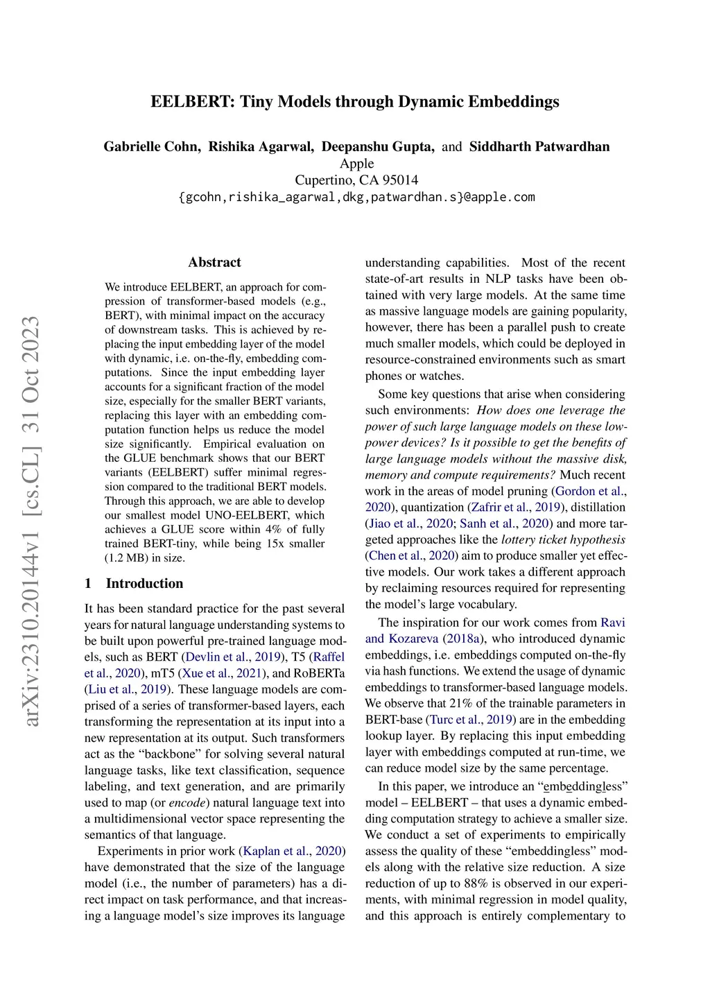 EELBERT: Tiny Models through Dynamic Embeddings