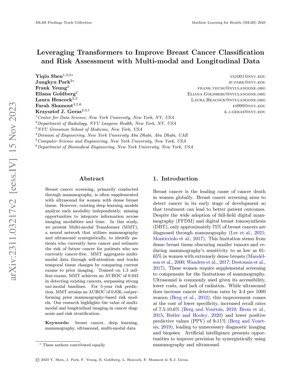 Leveraging Transformers to Improve Breast Cancer Classification and Risk