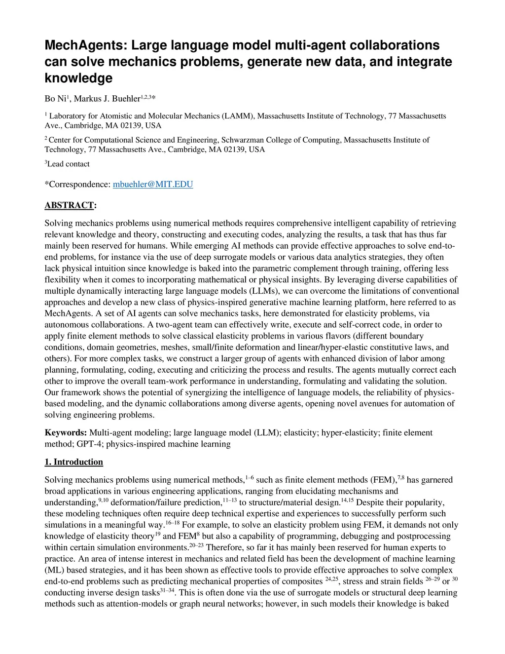 MechAgents: Large language model multi-agent collaborations can solve