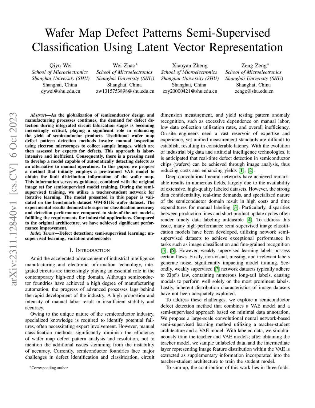 As the globalization of semiconductor design and manufacturing processes continues, the demand for defect detection during integrated circuit fabrication stages is becoming increasingly critical, playing a significant role in enhancing the yield of semiconductor products. Traditional wafer map defect pattern detection methods involve manual inspection using electron microscopes to collect sample images, which are then assessed by experts for defects. This approach is labor-intensive and inefficient. Consequently, there is a pressing need to develop a model capable of automatically detecting defects as an alternative to manual operations. In this paper, we propose a method that initially employs a pre-trained VAE model to obtain the fault distribution information of the wafer map. This information serves as guidance, combined with the original image set for semi-supervised model training. During the semi-supervised training, we utilize a teacher-student network for iterative learning. The model presented in this paper is validated on the benchmark dataset WM-811K wafer dataset. The experimental results demonstrate superior classification accuracy and detection performance compared to state-of-the-art models, fulfilling the requirements for industrial applications. Compared to the original architecture, we have achieved significant performance improvement.