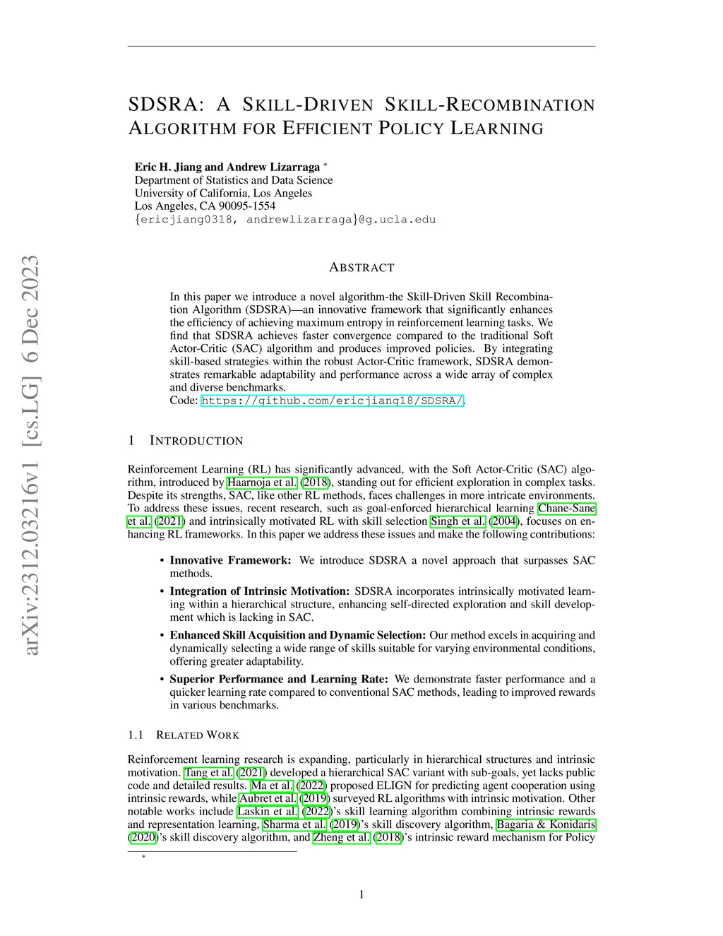 In this paper, we introduce a novel algorithm - the Skill-Driven Skill Recombination Algorithm (SDSRA) - an innovative framework that significantly enhances the efficiency of achieving maximum entropy in reinforcement learning tasks. We find that SDSRA achieves faster convergence compared to the traditional Soft Actor-Critic (SAC) algorithm and produces improved policies. By integrating skill-based strategies within the robust Actor-Critic framework, SDSRA demonstrates remarkable adaptability and performance across a wide array of complex and diverse benchmarks.