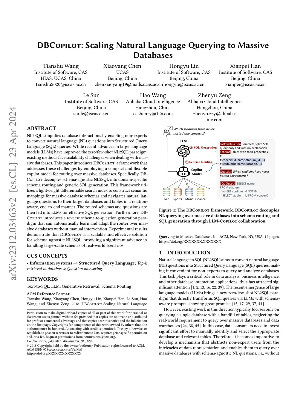 DBCopilot: Natural Language Querying over Massive Databases via Schema Routing