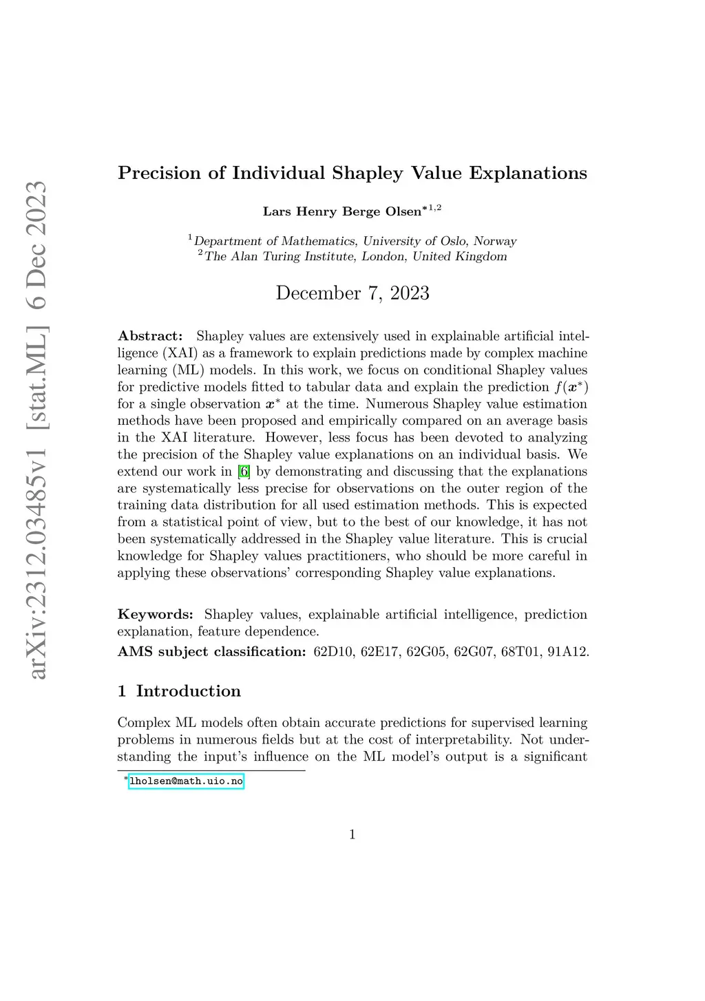 Precision of Individual Shapley Value Explanations