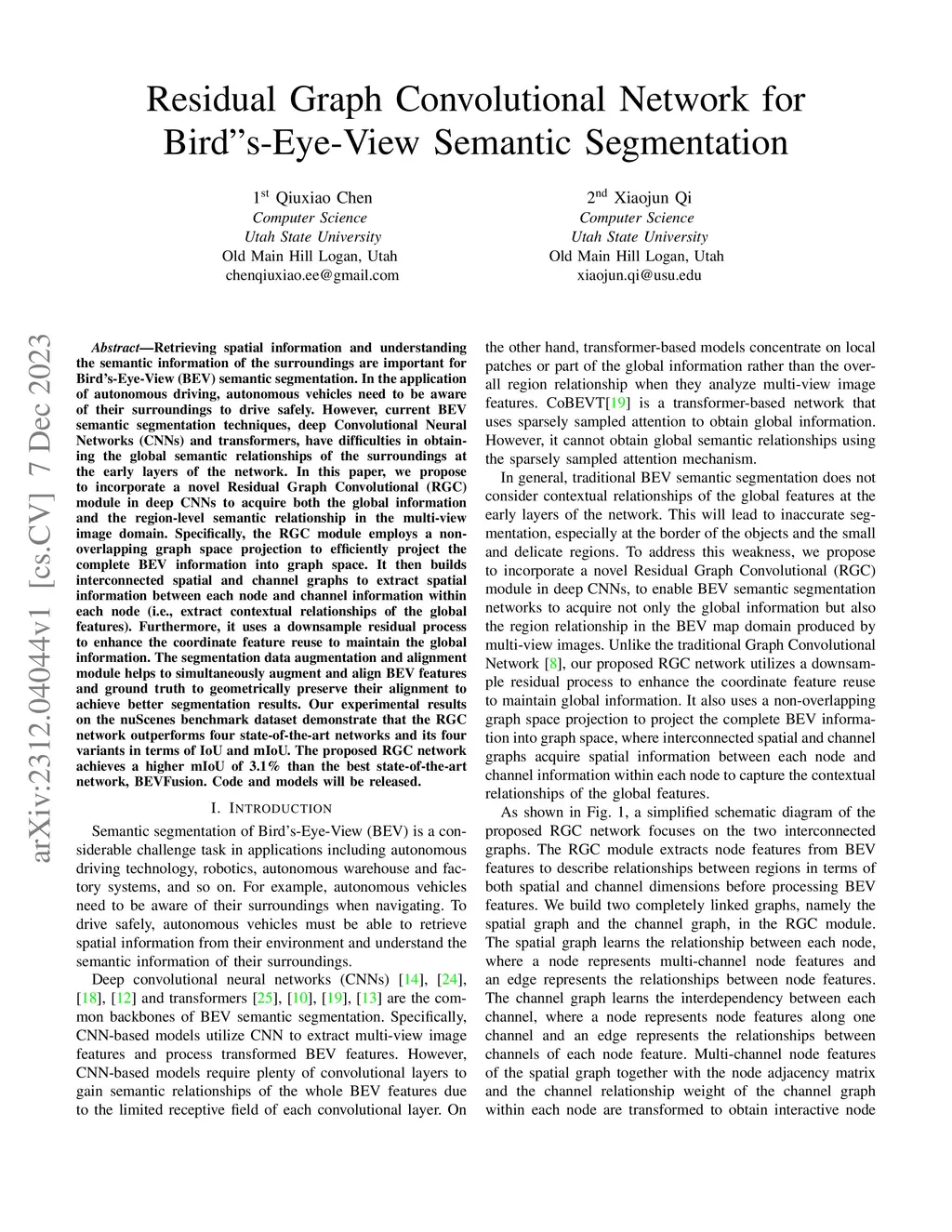 Residual Graph Convolutional Network for Bird's-Eye-View Semantic