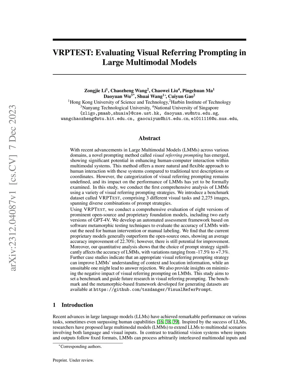 VRPTEST: Evaluating Visual Referring Prompting in Large Multimodal