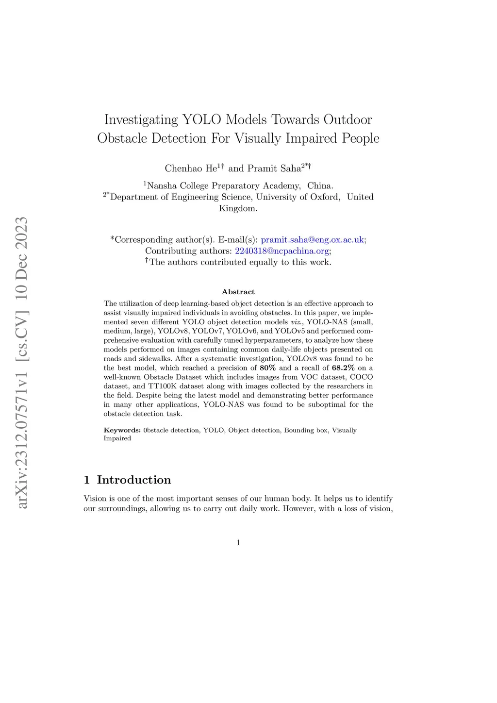 Investigating YOLO Models Towards Outdoor Obstacle Detection For