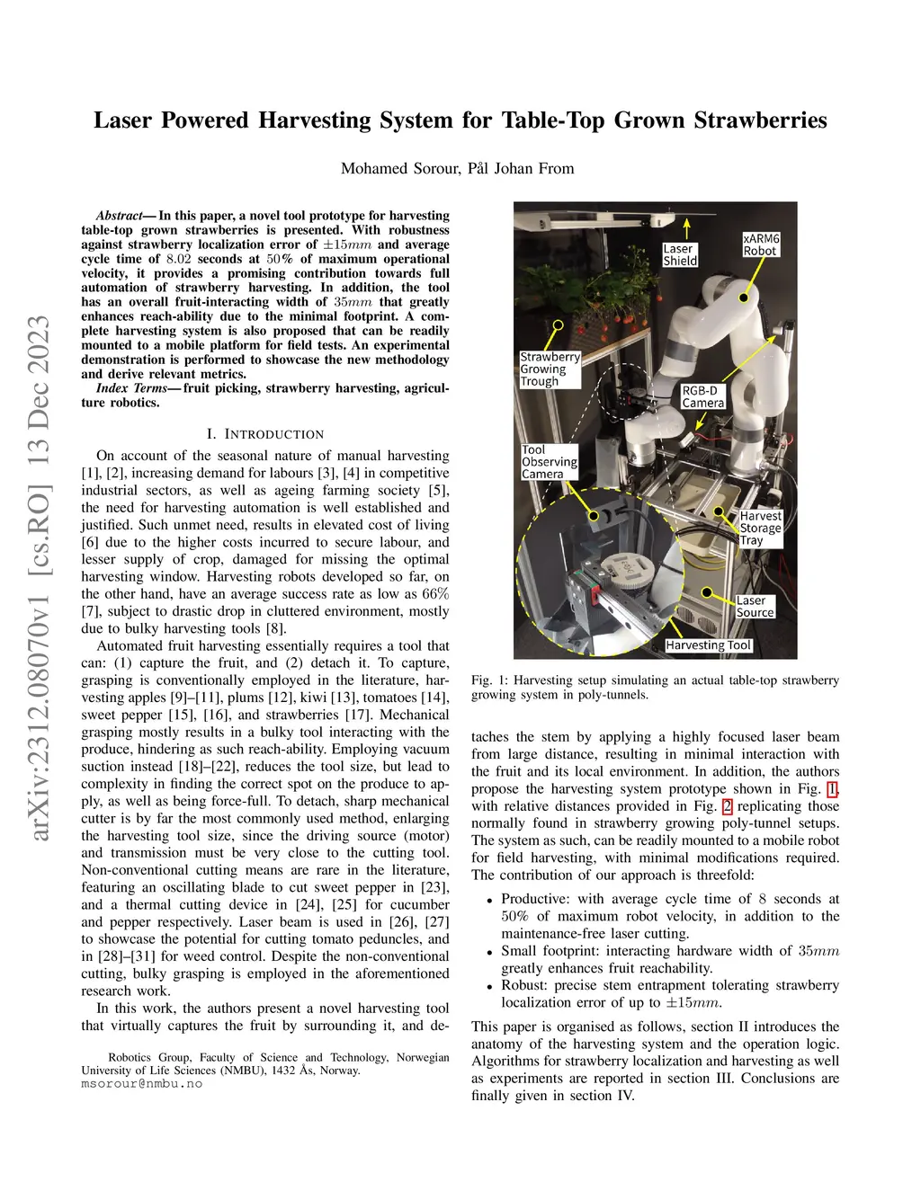 Laser Powered Harvesting System for Table-Top Grown Strawberries
