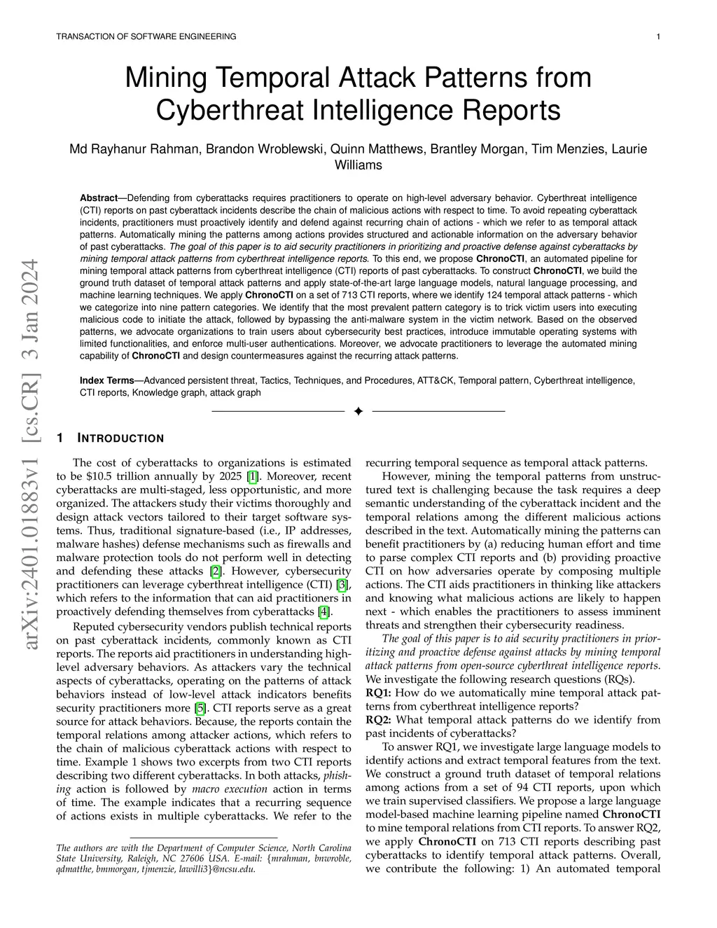 Mining Temporal Attack Patterns from Cyberthreat Intelligence Reports