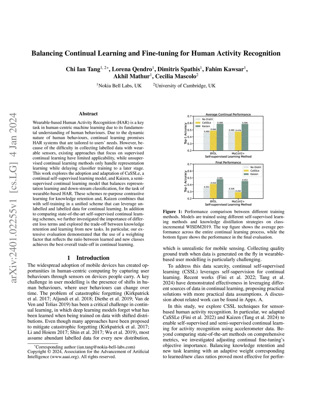 Balancing Continual Learning and Fine-tuning for Human Activity