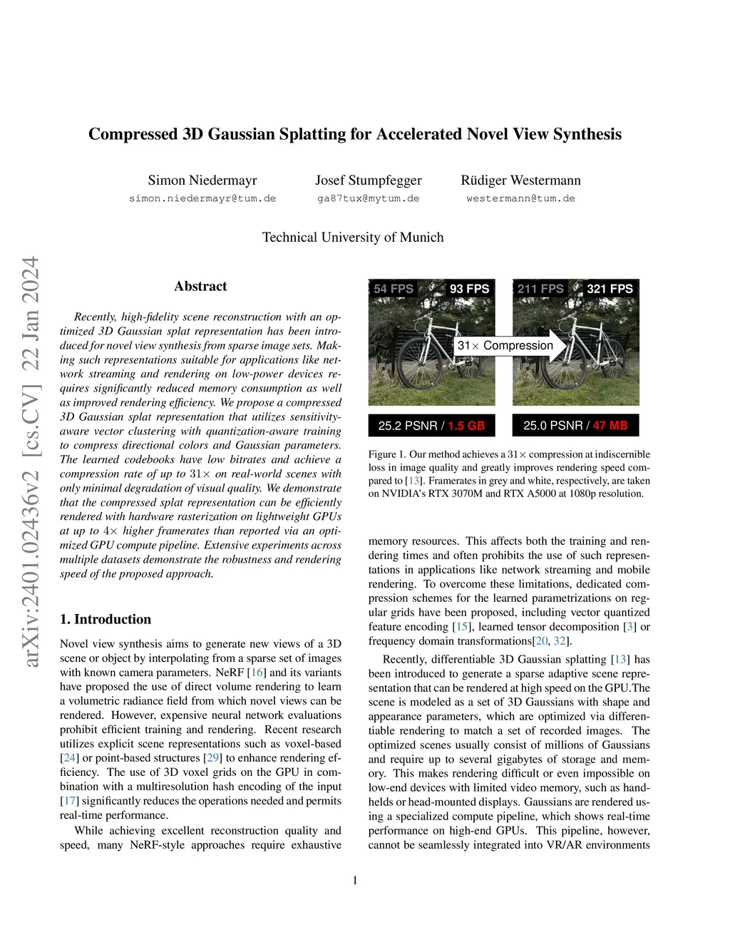 Compressed 3D Gaussian Splatting for Accelerated Novel View Synthesis