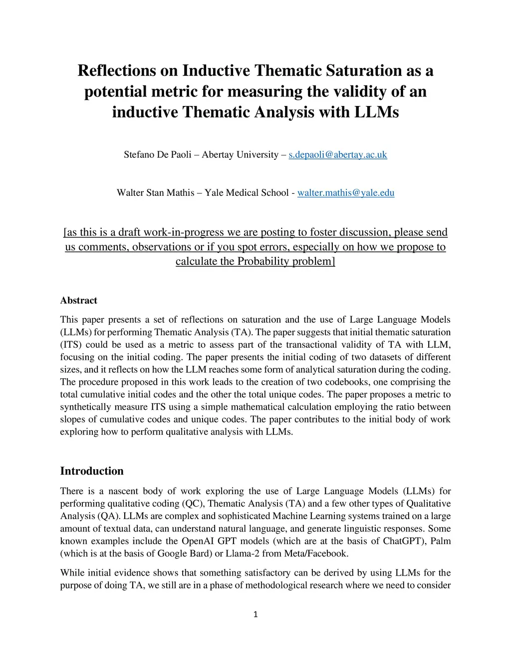 Reflections on Inductive Thematic Saturation as a potential metric for