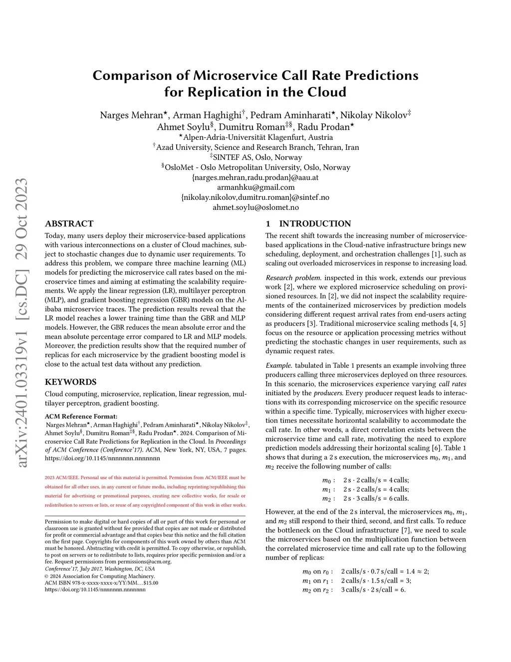 Comparison of Microservice Call Rate Predictions for Replication in the