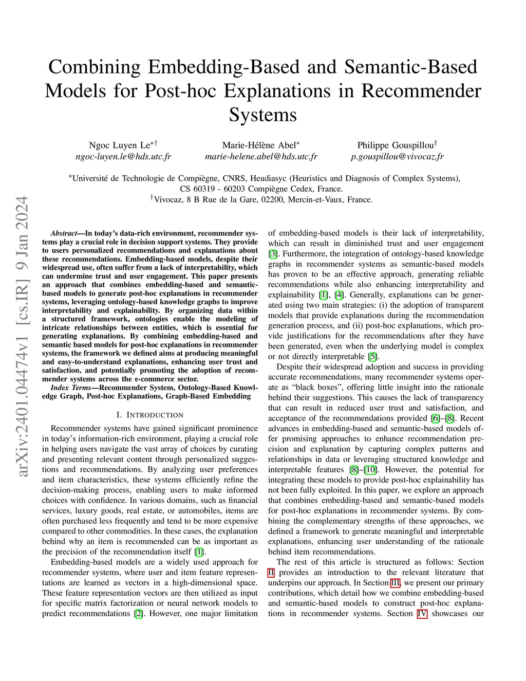 In today's data-rich environment, recommender systems play a crucial role in decision support systems. They provide to users personalized recommendations and explanations about these recommendations. Embedding-based models, despite their widespread use, often suffer from a lack of interpretability, which can undermine trust and user engagement. This paper presents an approach that combines embedding-based and semantic-based models to generate post-hoc explanations in recommender systems, leveraging ontology-based knowledge graphs to improve interpretability and explainability. By organizing data within a structured framework, ontologies enable the modeling of intricate relationships between entities, which is essential for generating explanations. By combining embedding-based and semantic based models for post-hoc explanations in recommender systems, the framework we defined aims at producing meaningful and easy-to-understand explanations, enhancing user trust and satisfaction, and potentially promoting the adoption of recommender systems across the e-commerce sector.