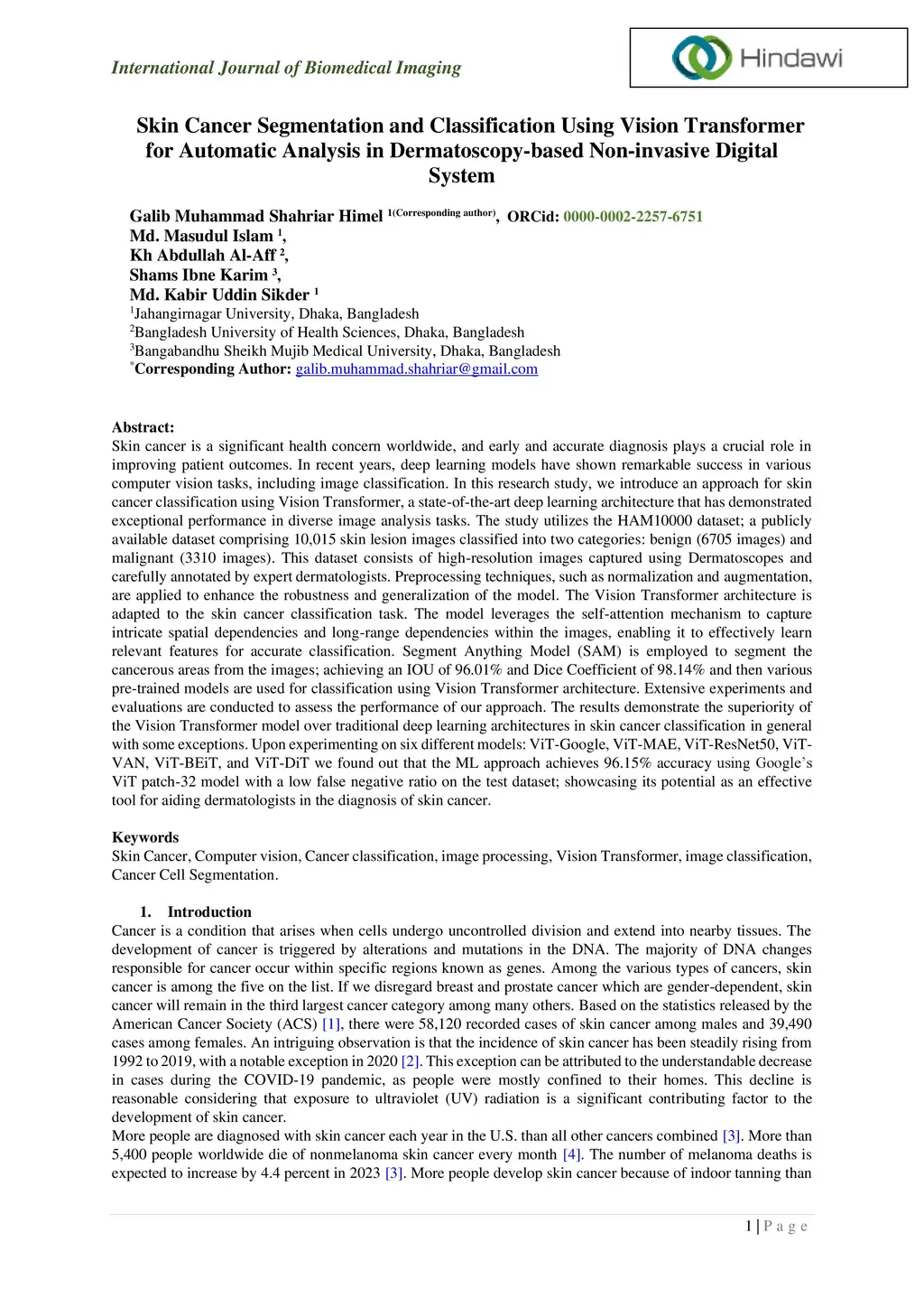 Skin cancer is a global health concern, necessitating early and accurate diagnosis for improved patient outcomes. This study introduces a groundbreaking approach to skin cancer classification, employing the Vision Transformer, a state-of-the-art deep learning architecture renowned for its success in diverse image analysis tasks. Utilizing the HAM10000 dataset of 10,015 meticulously annotated skin lesion images, the model undergoes preprocessing for enhanced robustness. The Vision Transformer, adapted to the skin cancer classification task, leverages the self-attention mechanism to capture intricate spatial dependencies, achieving superior performance over traditional deep learning architectures. Segment Anything Model aids in precise segmentation of cancerous areas, attaining high IOU and Dice Coefficient. Extensive experiments highlight the model's supremacy, particularly the Google-based ViT patch-32 variant, which achieves 96.15% accuracy and showcases potential as an effective tool for dermatologists in skin cancer diagnosis, contributing to advancements in dermatological practices.