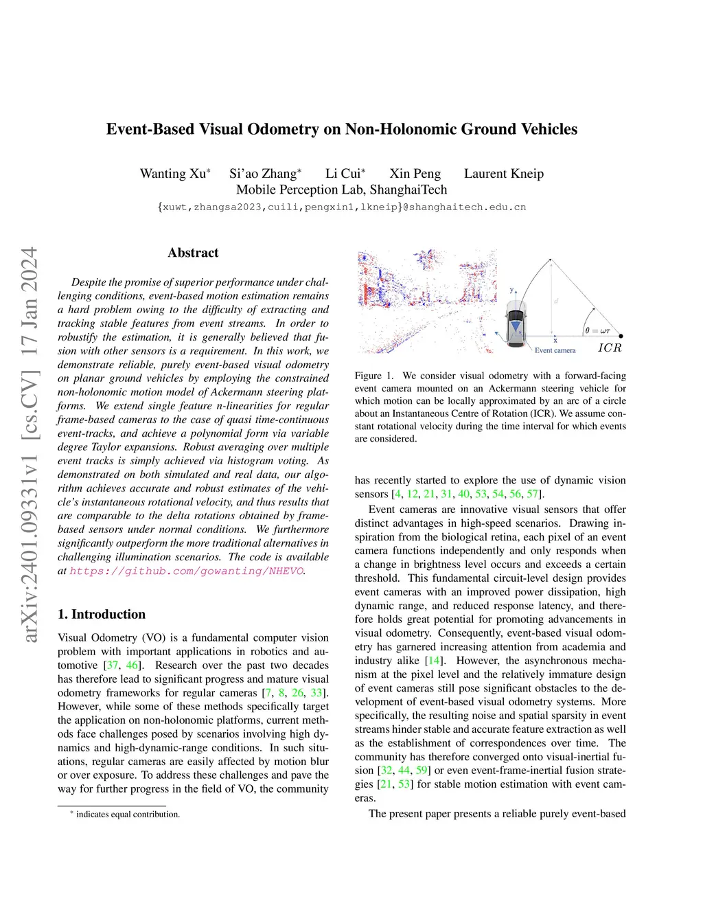 Event-Based Visual Odometry on Non-Holonomic Ground Vehicles