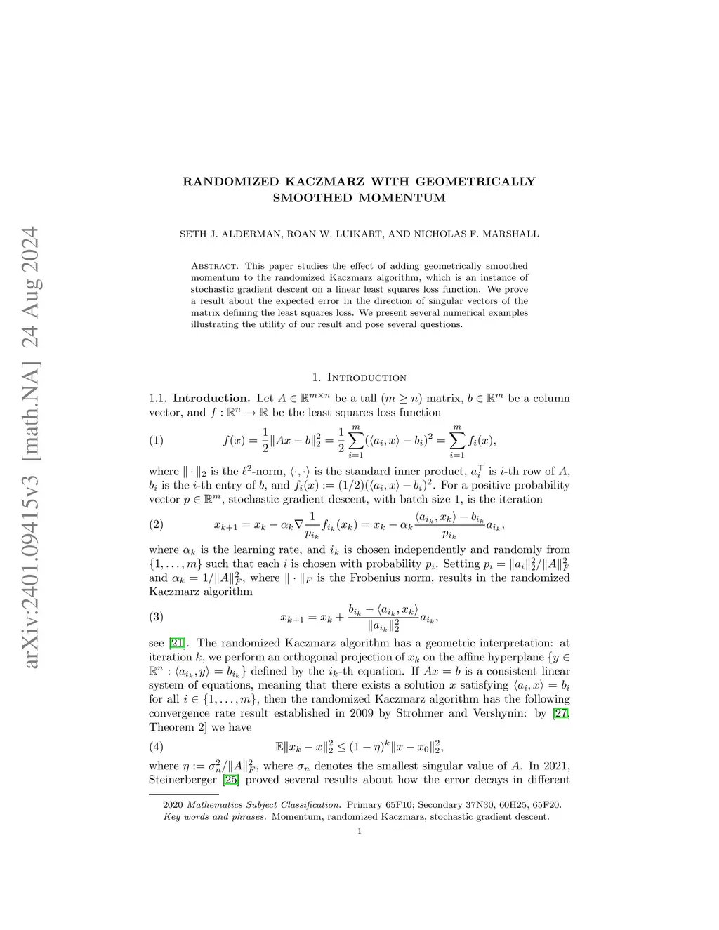 SIAM Journal on Matrix Analysis and Applications (SIMAX), 2024